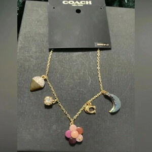 NEW COACH FLOWER MOON CHARM NECKLACE