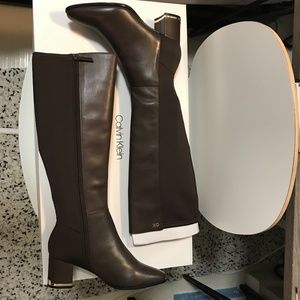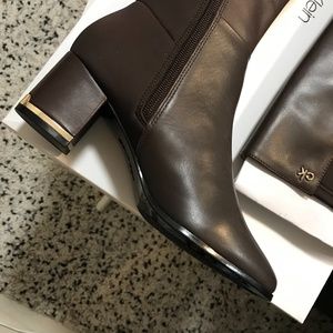 NEW Calvin Klein High Riding Almond Shape Toed Boots in Coffee Bean