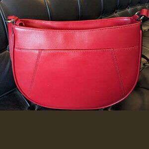 NEW Calvin Klein Red Leather Crossbody Bag Gold Logo | 50″ Strap