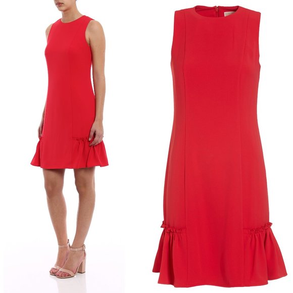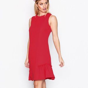 Chic, beautiful and comfortable dress by Calvin Klein. A-line, sleeveless dress small frills at bottom, rear concealed zip fastening.