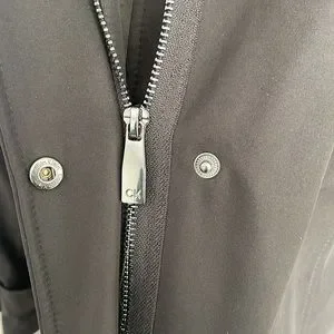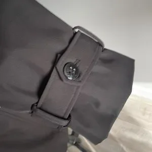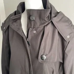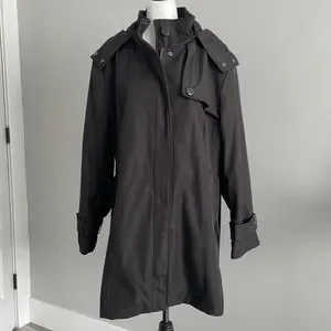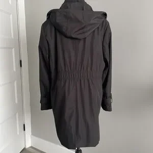 Lined. Zipper closure with snaps. Hooded. Inside pocket and extra button.
