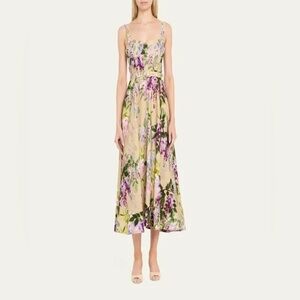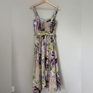 NEW Cara Cara Calypso Belted Midi Dress Wisteria Ginger Root Floral | US 4 UK 8
