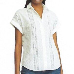 NEW Chaps Petite Eyelet 100% Cotton White Shirt