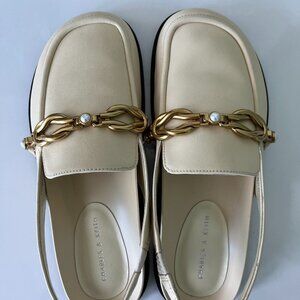 Super cute slingback mules from Charles & Keith. New, never worn - only tried on. They are super cute for spring but I'm simply not a gold hardware girly. The embellishment is a combination of pearl and antique gold colour. Please note the colour is more like last photo... it is a creamy light yellow colour! This is a US 5.5 / EU 36 but fits me as I am a US 6.
