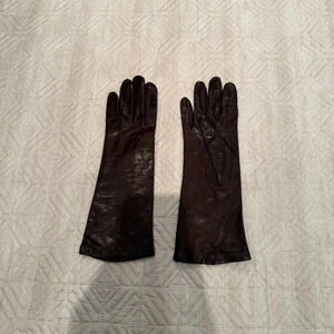 Details: Chocolate brown leather gloves; fits snug. Soft inner silk lining, see pictures.