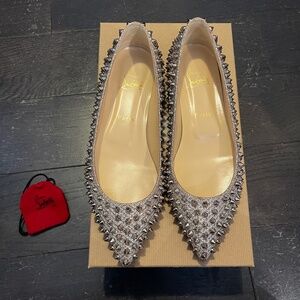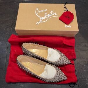 NEW Christian Louboutin follies Spikes Flats glitter diams Size 38.5 Full set
