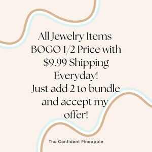 All Jewelry in my Boutique: Buy One get One 50% Off with $9.99 Shipping Add to Bundle and I will send you an offer!