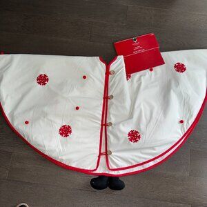 NEW Christmas Tree Fabric Skirt Santa Red and White Round 48 inches Buttons