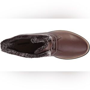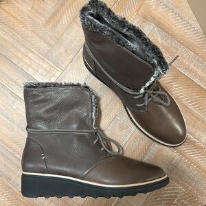 NEW Clarks Shannon Pearl Taupe brown Leather Lace Up Bootie Boot with Faux Fur Lining