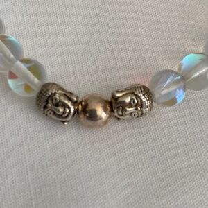 NEW Clear Aura Quartz Round Beads Bracelet with Buddha Head Beads Accent