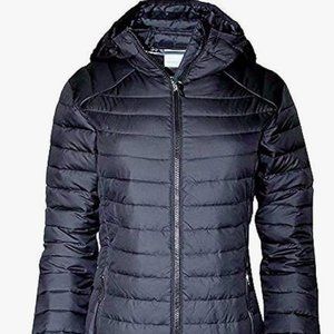 NEW Columbia Womens White Out Mid Omni-heat Long Hooded Light Puffer Jacket XXL