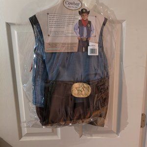Includes: Pleather Chaps, Denium & Pleather Vest, Red Bandanna, Felt Hat and removable Sheriff's badge