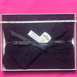 NEW! DANIER 100% Cashmere BLACK Scarf and Headband Ear Warmer in a Gift Box