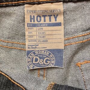 New and perfect condition, Size 26 black and gold dust accent jeans from D&G, flared 10” at the bottom, waist on hanger is 14.5”, inseam 33.5, amazing with wedges/heels, Made in Morocco 🇲🇦