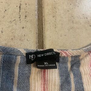 NEW DIRECTIONS Striped Tie-Front Blouse - Blue, Red, & Tan - Size XL