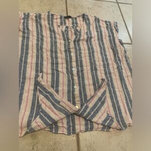 💛 NEW DIRECTIONS Striped Tie-Front Blouse - Blue, Red, & Tan - Size XL