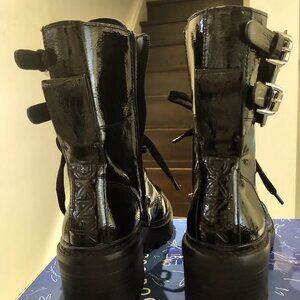 NEW DKNY Womens Bootie Combat Boots Moto Boots Patent Leather Black BART 6.5