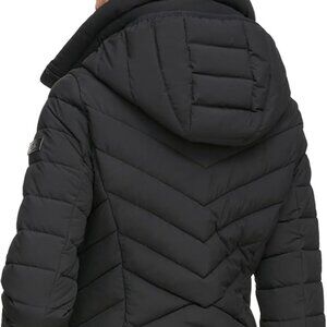 This DKNY Women's Outerwear Puffer is a Bib-Front Light-weight Puffer Coat