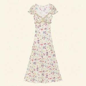 NEW DOEN Valerine SIlk Blend Dress Windswept Blooms Cream Floral | US XS