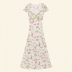 NEW DOEN Valerine SIlk Blend Dress Windswept Blooms Cream Floral | US XS