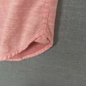 Denim & Flower Shirt. Men's Tag Size Medium. Cotton / Poly blend. Peach / pink melange colouring Short sleeve. Button down collar. Lightweight and airy.