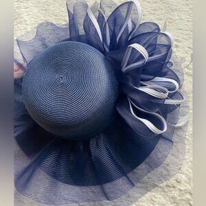Brand new, never worn, navy blue and white derby hat!