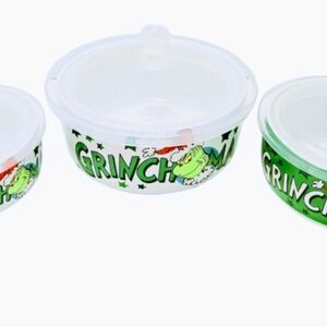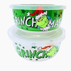 NWOT 3pc Dr. Suess 65th Anniversary GRINCHMAS Nesting Ceramic Food Storage Container Set.