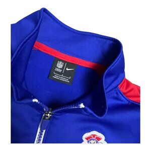 Embrace the versatility of New England Patriots fandom with this Nike men's light jacket. Fashioned in a sleek blue, this windbreaker-style jacket offers a mid-length cut that blends functionality with team pride. The full-zip design and lightweight polyester material make it an ideal choice for a range of occasions, from casual outings to travel and even workwear.