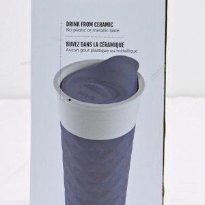The insulated silicone boot on the Ello Ogden 473 mL (16 oz.) ceramic travel mug keeps contents hot for up to 2x longer than a normal restaurant mug. You may drink directly from the ceramic thanks to a splash-proof slider lid.