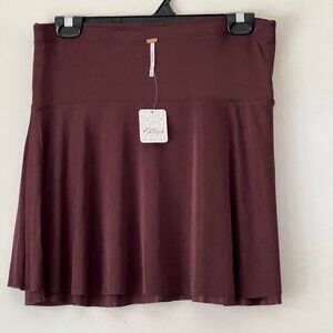 NEW FREE PEOPLE chocolate brown Drawstring Ruffled Mini Skirt. Size L