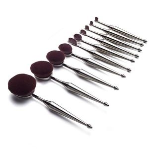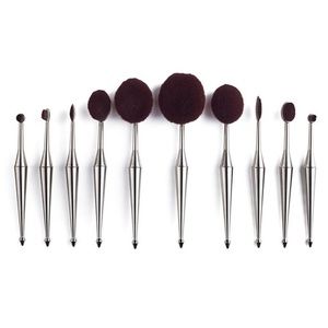 NEW Facebase 10pc Set of Pewter Oval Luscious Thick Makeup Brush Set Rtl $395