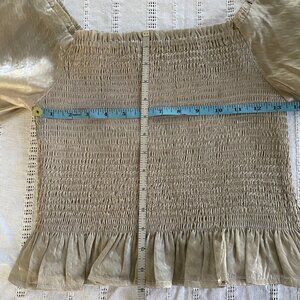 NEW Fancy shiny gold long sleeve top size L with sheer sleeves