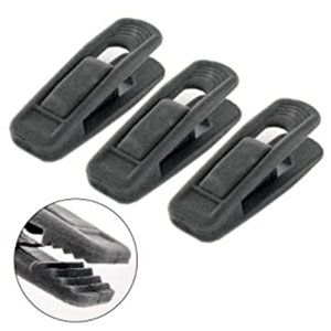 Per manufacturer’s description: The Fasmov clips are perfect for use with slim-line velvet hangers. Included are 20 pieces each of Black, Grey, Rose Red coloured hangers. These clothes hanger clips have solid non-slip teeth, which can hold the clothes tightly without falling; when you fix the clip on the hanger, the grip of the clip will clamp the hanger tightly to increase friction.