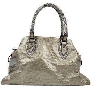 NEW Fendi Silver Metallic Du Jour Ostrich Bag