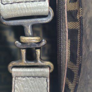 Fendi Silver Metallic Du Jour Ostrich Bag made from high quality leather. The leather finished with a film of metal which gives the leather a laminated effect. One inner pocket and snap closure button. Made in Italy. Authenticity card included. Original dust bag not included, instead Next Door Closet dust bag provided.