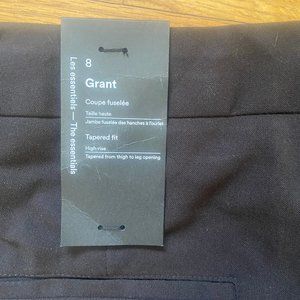 Very flattering high-rise tapered fit pants with some stretch. I've bought this exact fit of pants from Frank & Oak multiple times because of how flattering they are!