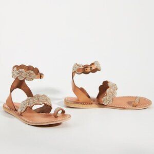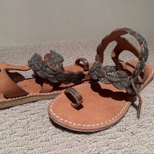 NEW Free People - Bead Embroidered Sparkle Leather Strap Sandals - size 7