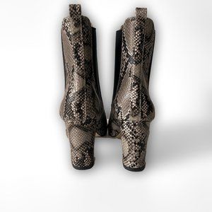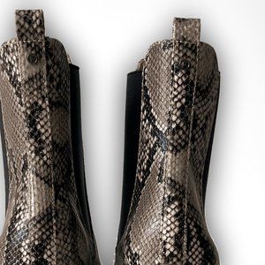 NEW! French Connection Vegan Leather Penny Chelsea Block Heel Boots Snake