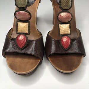 NEW Frye Dolly Leather Jewel Gem Stone T-Strap Boho Chunky Wooden Heels Shoes