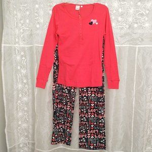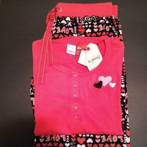 NEW Fuschia & Black LOVE Fleece Pajama Set, L