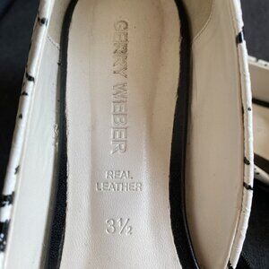 NEW GERRY WEBER WOMEN LEATHER SHOES FLAT WHITE/BLACK ABSTRACT PATTERN SZ 3.5UK