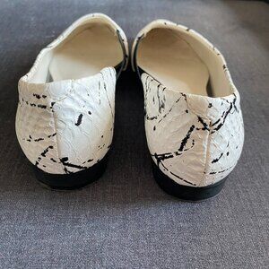 GERRY WEBER WOMEN TEXTURED LEATHER SHOES SLIP ON FLAT WHITE/BLACK ABSTRACT PATTERN NEVER WORN