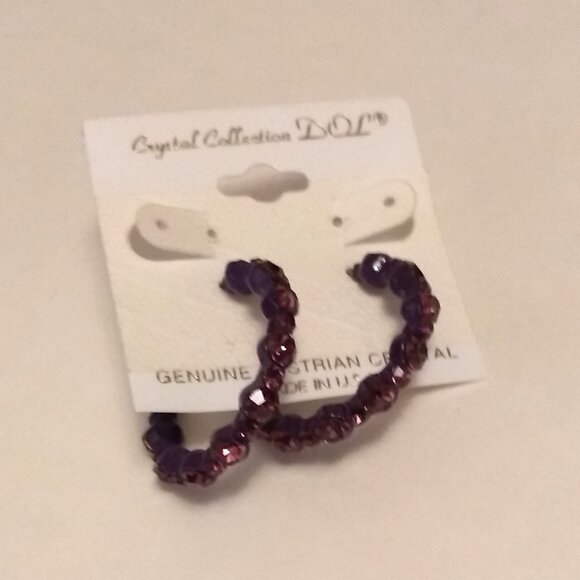 NEW Genuine Dark Purple Austrian Crystal Large Round Hoop Earrings 30mm