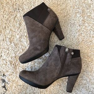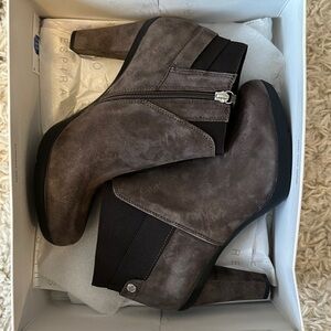 NEW Geox D Inspiration B Heeled Ankle Boots Shoeties in Chestnut Suede Leather
