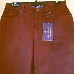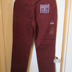 Beautiful Velvet Wine Colour (much nicer than the photos), pair of the Original Slimming Jeans from 'Amanda' Collection. Tapered leg; Classic Rise. Size 10 Petite. New with all the labels in place! Waist measurement 31", Leg 28".