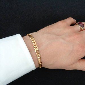 NEW Gold Cuban Link Chain Bracelet, Gold Plated 925 Sterling Silver Italy