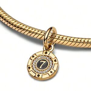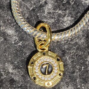 NEW Gold Lucky 7 Chip Pendant Charm For Bracelet or Chain