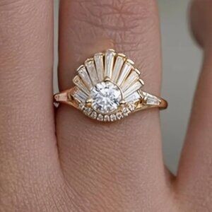 NEW Gold Tone Art Deco Ring - Vintage looking Rhinestone accents - Size 6