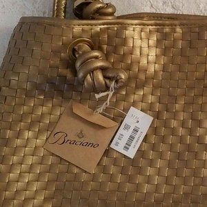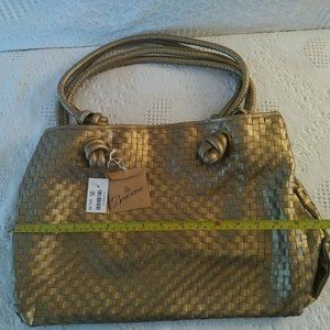 NEW Gold Woven Faux-Leather Handbag with leopard print fabric lining.