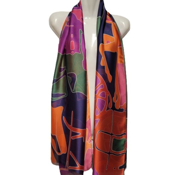 Amazing kaleidoscope of colors in this silky smooth long rectangular Silk Scarf